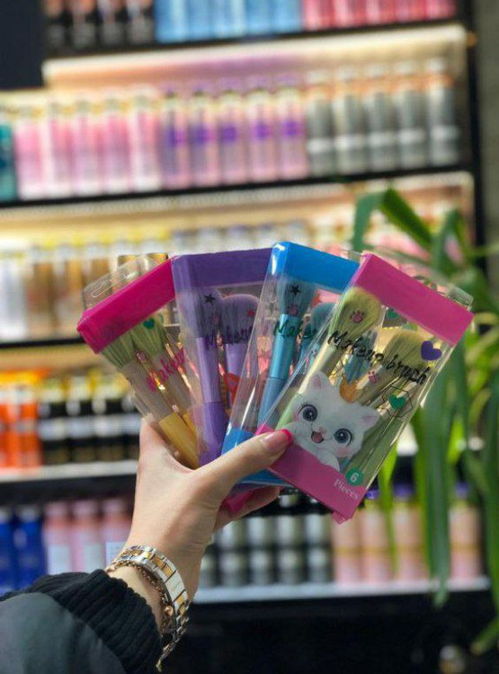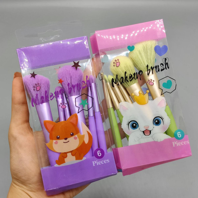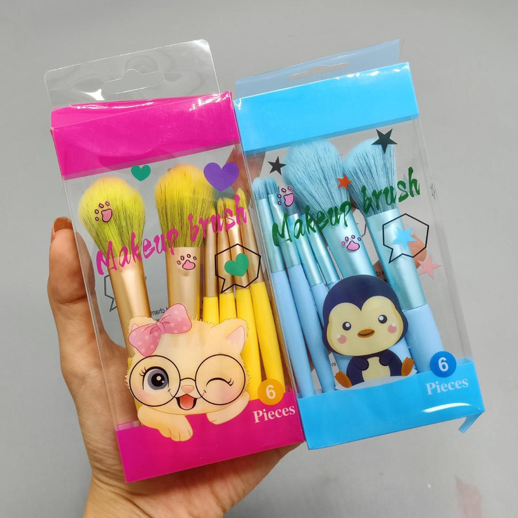 ست براش آرایشی 6 عددی جعبه طلقی طرح حیوانات